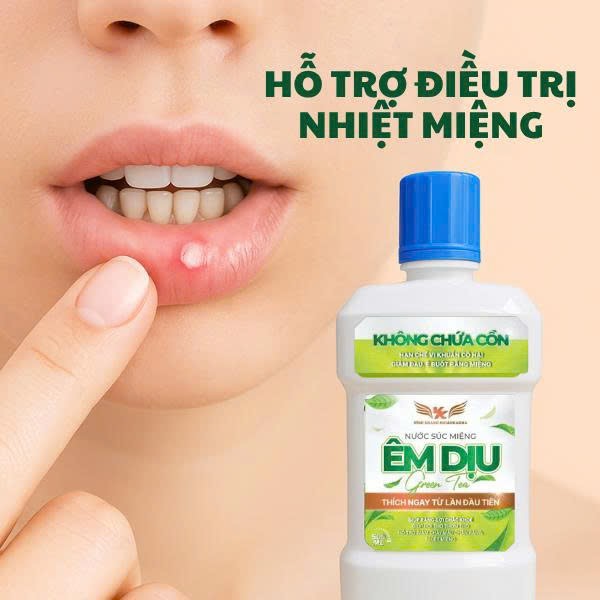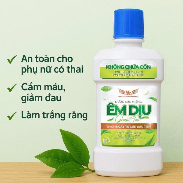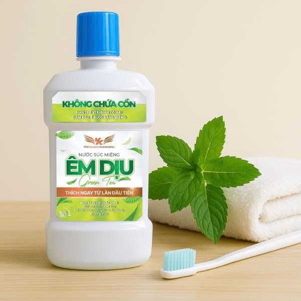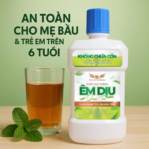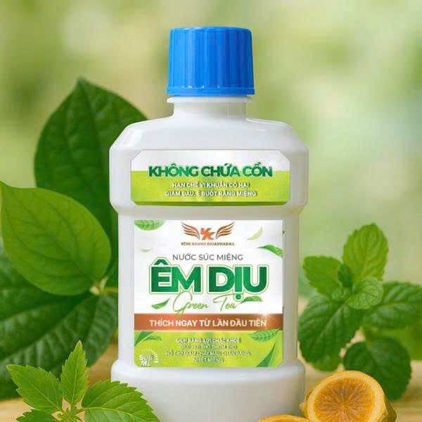 Nước súc miệng thảo mộc Êm Dịu là giải pháp chăm sóc răng miệng toàn diện, được chiết xuất từ trà xanh, trầu không, bạc hà, vỏ cau cùng các thành phần an toàn như Sodium Lauryl Sulfate, Glycerine, Sorbitolum, Poloxamer 407, Zinci Sulfat, Nipazin. Sản phẩm không chứa cồn, giúp giảm vi khuẩn gây hại, ngăn ngừa hôi miệng, hỗ trợ giảm ê buốt và nhiệt miệng ngay từ lần sử dụng đầu tiên.
